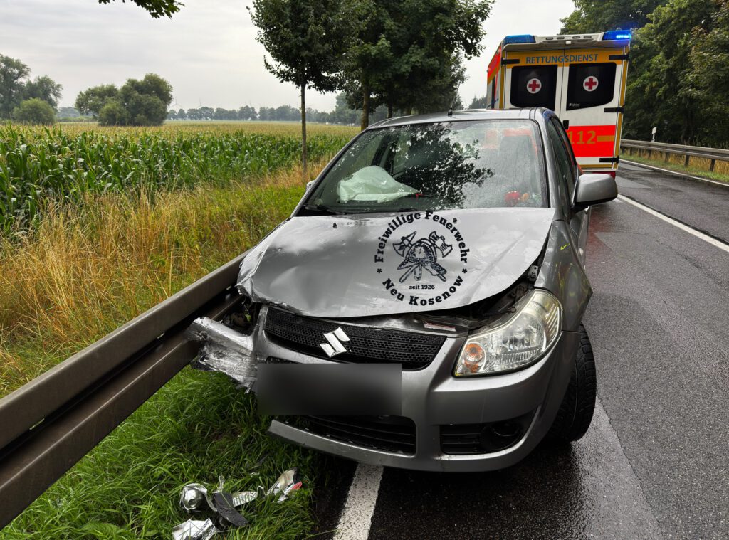 Keine 24 Stunden nach dem schweren Unfall am Vorabend wurden wir erneut auf die B109 alarmiert, diesmal nur etwa 200 Meter entfernt von der vorherigen Einsatzstelle. Ein PKW war gegen eine Leitplanke geprallt.