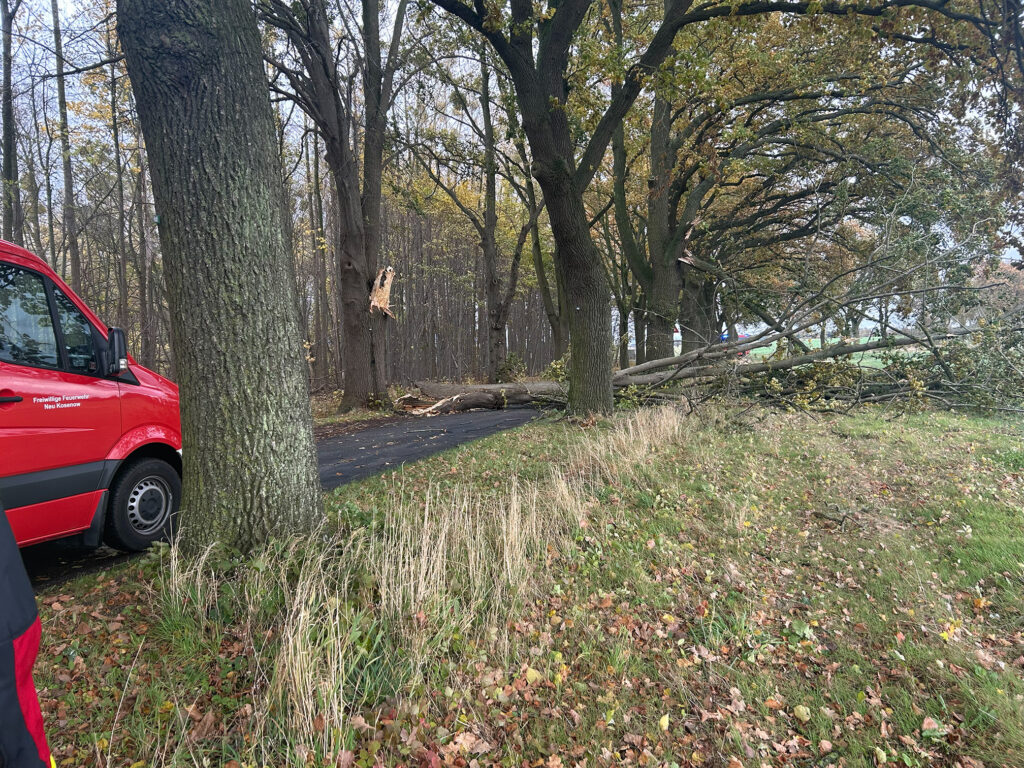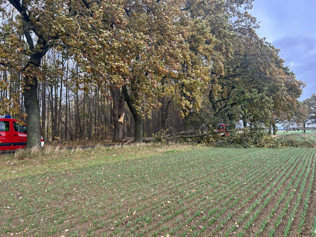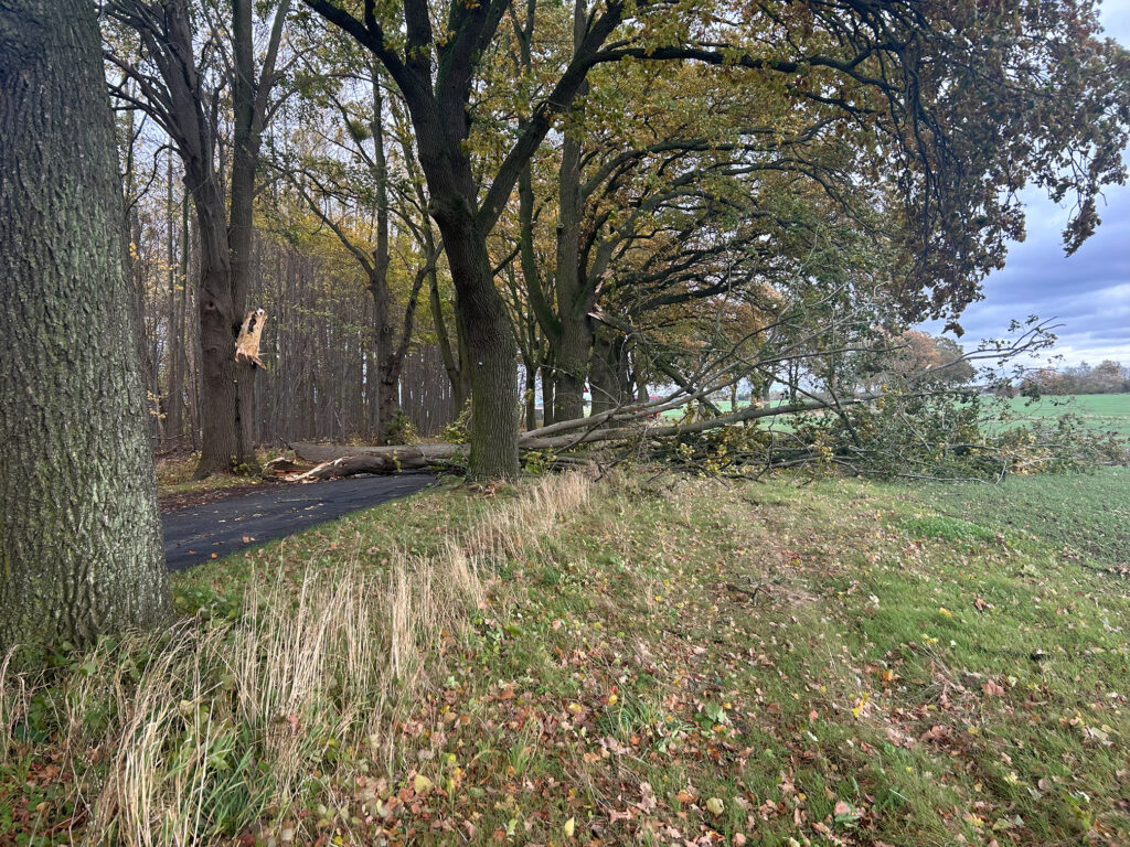 K50, Fahrtrichtung Bugewitz, Baum lag auf der Strasse, Kein Personenschaden, kein